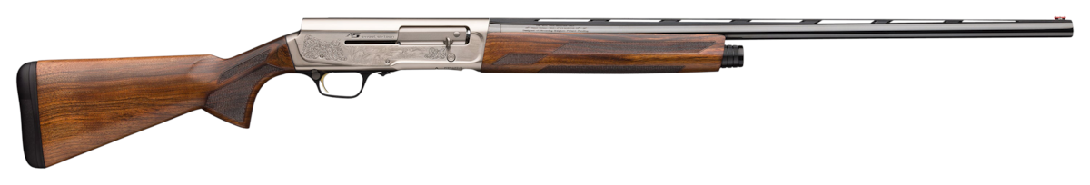 The A5 Ultimate Sweet Sixteen is a gem of an autoloading shotgun, featuring the combination of high-performance, short-recoil operation with beauty of a gloss oil finish on the walnut stock and satin nickel finish on the engraved receiver. Stylish checkering enhances the appearance, as well as the grip.