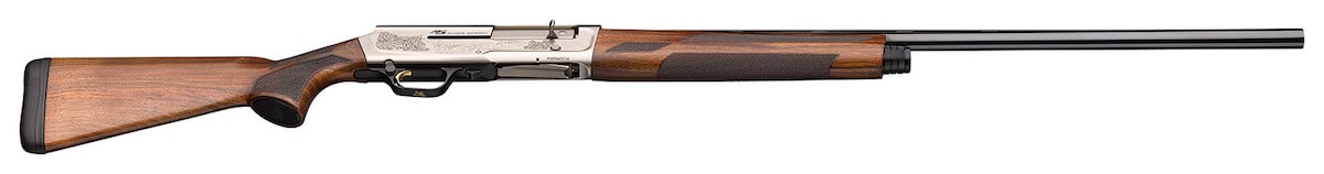 The A5 Ultimate Sweet Sixteen is a gem of an autoloading shotgun, featuring the combination of high-performance, short-recoil operation with beauty of a gloss oil finish on the walnut stock and satin nickel finish on the engraved receiver. Stylish checkering enhances the appearance, as well as the grip.