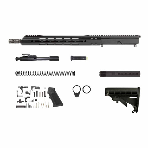 But there’s still much more to love about this gun besides its upper receiver. It aslo comes equipped with a 16″ parkerized barrel with a 1:10 twist rate paired with a 15″ free-float M-Lok handguard. Included in the kit as well is state of the art lower parts kit and a 6-position stock and buffer kit.