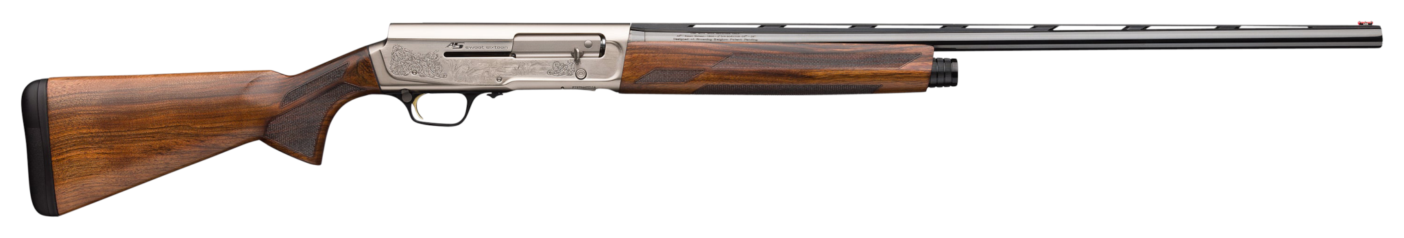 The A5 Ultimate Sweet Sixteen is a gem of an autoloading shotgun, featuring the combination of high performance, short recoil operation with beauty of a gloss oil finish on the walnut stock and satin nickel finish on the engraved receiver. Stylish checkering enhances the appearance, as well as the grip.
