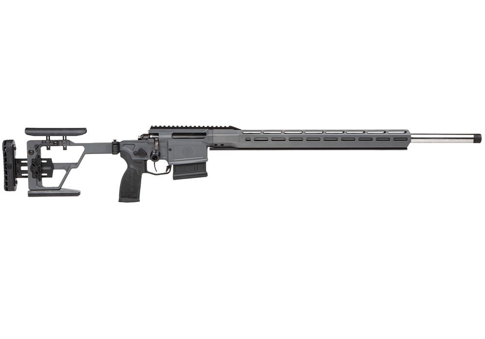 The Sig Cross was designed and built from the ground up at the Sig Sauer research and development facilities in New Hampshire with the input of hunters, military snipers and elite long-range shooters. The Cross rifle was created to meet the demands of both precision long-range shooting and extreme back country hunting. The rifle features the lightest, most portable rifle in its class, folding precision-style stock, one piece receiver for increased accuracy, 2 Stage adjustable match trigger and a free floating M-LOK handguard. Designed and built in the USA.