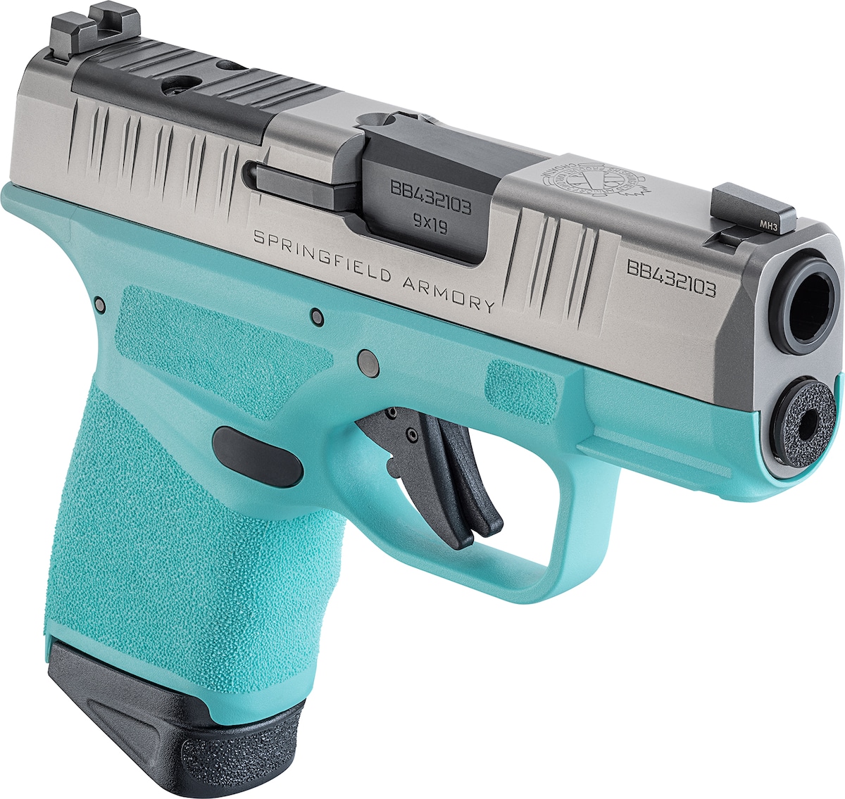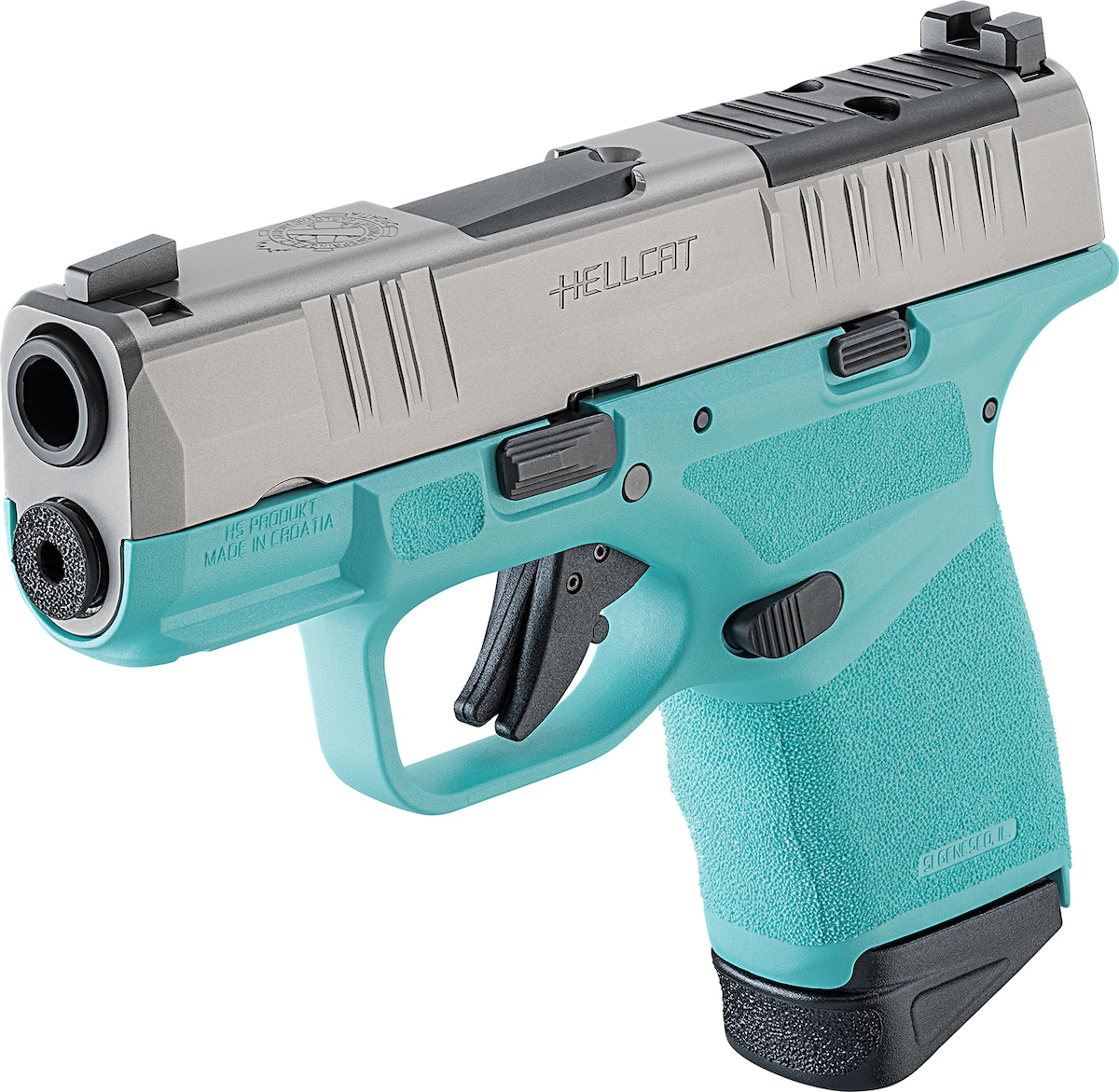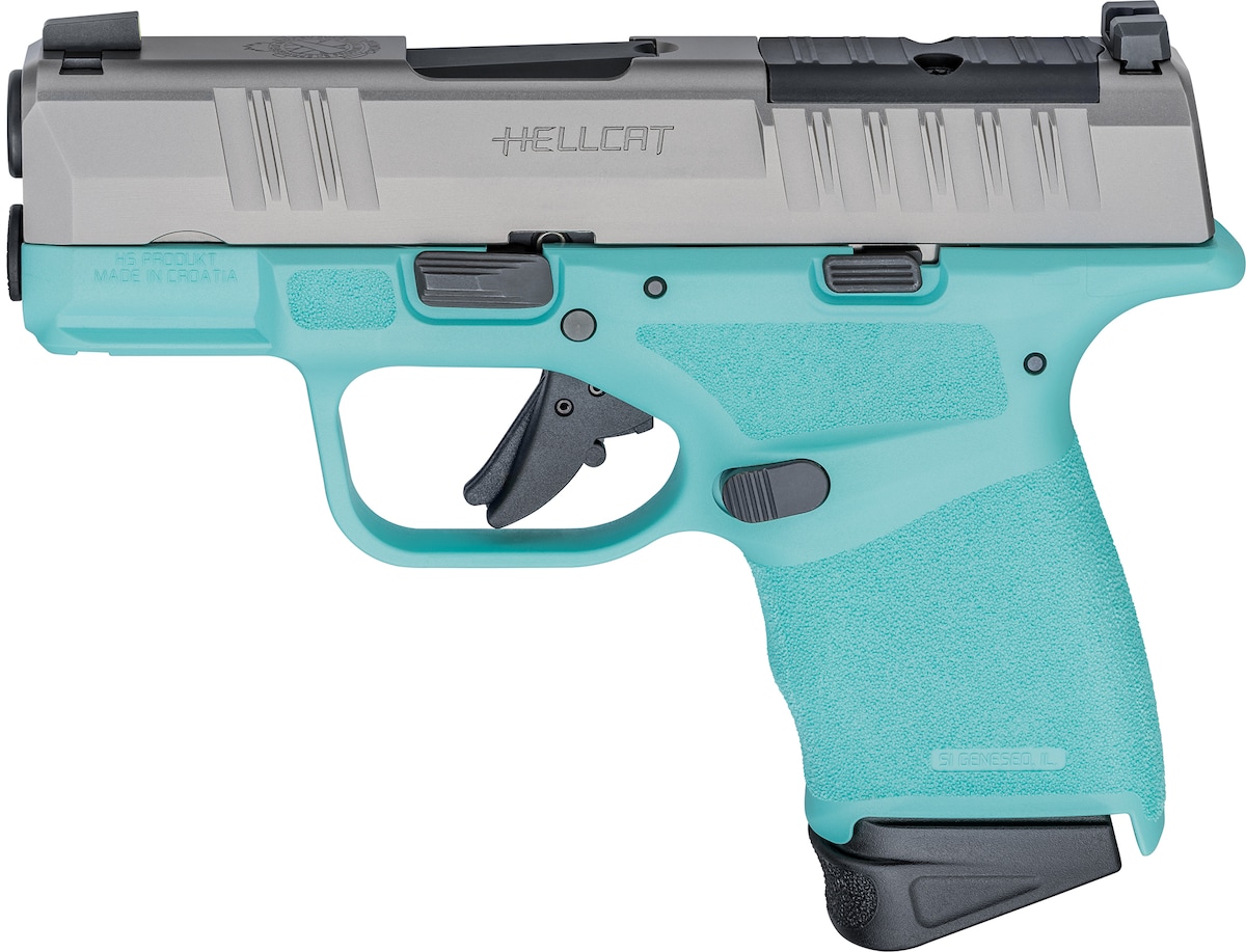 The Springfield Armory® Hellcat® with stainless steel slide and barrel paired with a Robin’s Egg Blue frame raises the bar on concealed carry pistols. Offering up to an amazing 13+1 rounds on tap, the Hellcat OSP™ (Optical Sight Pistol) has its billet-machined rear slide deck cut to accept a micro red dot sight. Premium features like a 3″ hammer-forged Melonite®-coated 1:10″-twist barrel and svelte 1″ grip width define the Hellcat® line.