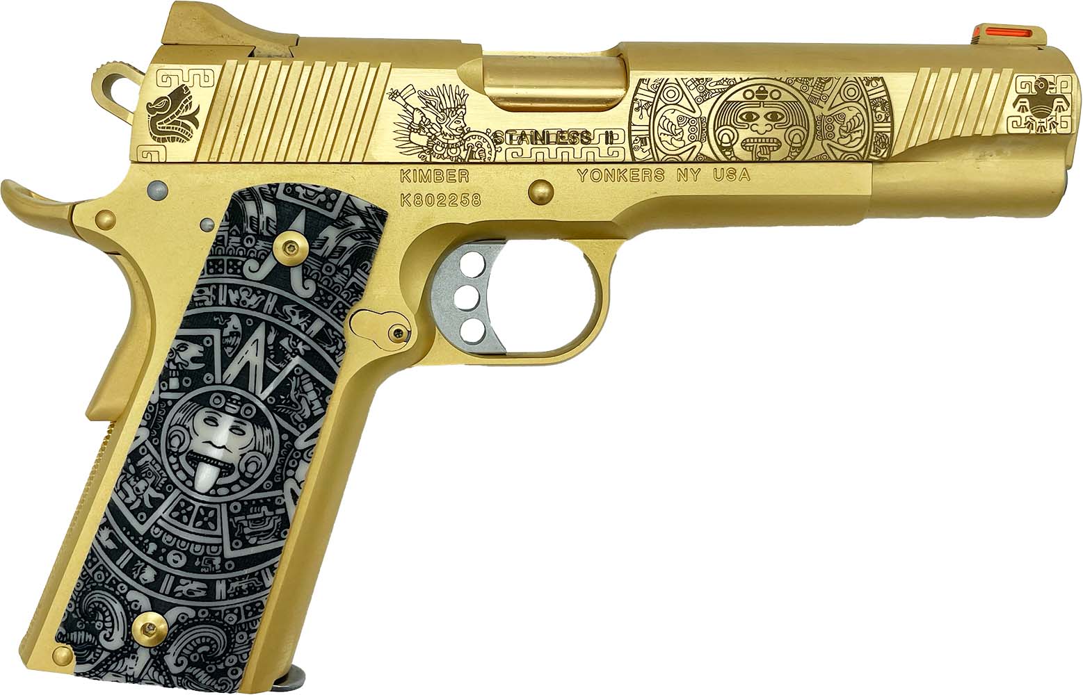 - Our Kimber Stainless II 24 Carat Gold "Aztec" Style .45ACP 5" Barrel 7-Rounds Exclusive is ideal if you’re shopping for: Kimber Stainless II 24 Carat Gold "Aztec" Style .45ACP 5" Barrel 7-Rounds Exclusive, 1911, Kimber. Great options for both beginners and experienced owners.