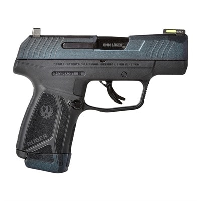 The Ruger Max-9 is slim, lightweight and compact for personal protection. It’s striker-fired with a short, smooth trigger pull, clean break and positive reset. It also features rugged construction with through-hardened alloy steel slide; one-piece, precision-machined fire control chassis; and high-performance, glass-filled nylon grip frame. The slide is optic ready for direct mounting of co-witnessed JPoint and Shield-pattern micro red dot sights. It utilizes tritium fiber optic day/night front sight for high visibility and drift adjustable rear sight. A cold hammer-forged barrel results in ultra-precise rifling that provides exceptional accuracy and longevity. Safety features include integrated trigger safety, manual safety, internal striker blocker and inspection port that allows for visual confirmation of a loaded or empty chamber. This Pro model features a no manual safety. NOTE: JPoint & Shield-pattern micro red dots are NOT included.