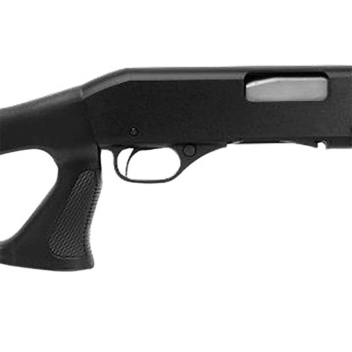 Savage Arms Stevens 320 Security Matte Black 12 Gauge 3in Pump Action Shotgun – 18.5in – The 320 Security comes standard with an ergonomic thumbhole stock for improved handling and a sturdy grip. It features an 18.5in barrel with a matte black forend and thumbhole stock with texturing, smooth, reliable pump action, proven rotary bolt and dual slide bars.