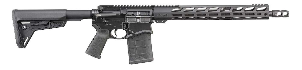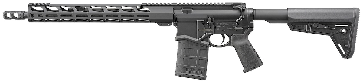 Sockets for Quick Disconnect (QD) sling swivels located at the muzzle end of the handguard allows for comfortable carry with a two-point sling. The rifle-length gas system features a 0.750″ 4-position rotary-regulator gas block to achieve ideal function across the wide range of ammunition available in the marketplace today. The included, on-board 3/16″ ball-end wrench makes for easy regulator adjustment. Equipped with a Ruger Elite 452 trigger that delivers a smooth, crisp 4.5-pound 2-stage trigger pull. A full-strength hammer spring and lightweight hammer ensure fast lock times and consistent primer ignition. Made from a 7075-T6 hard-coat anodized aluminum forging, the upper receiver is complete with brass deflector, forward assist, and full-length Picatinny rail. The lower receiver features a generous flare on the magazine well for easy magazine insertion.