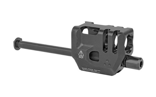 The Mass Driver Compensators from Strike Industries complete revamp compensator design. By physically separating the muzzle device from, well, the muzzle – and instead attaching it to the foreend of the frame, where it also houses the recoil spring – all that added weight is removed from your barrel, reducing moving mass and inertia, and improving cyclic rates.
