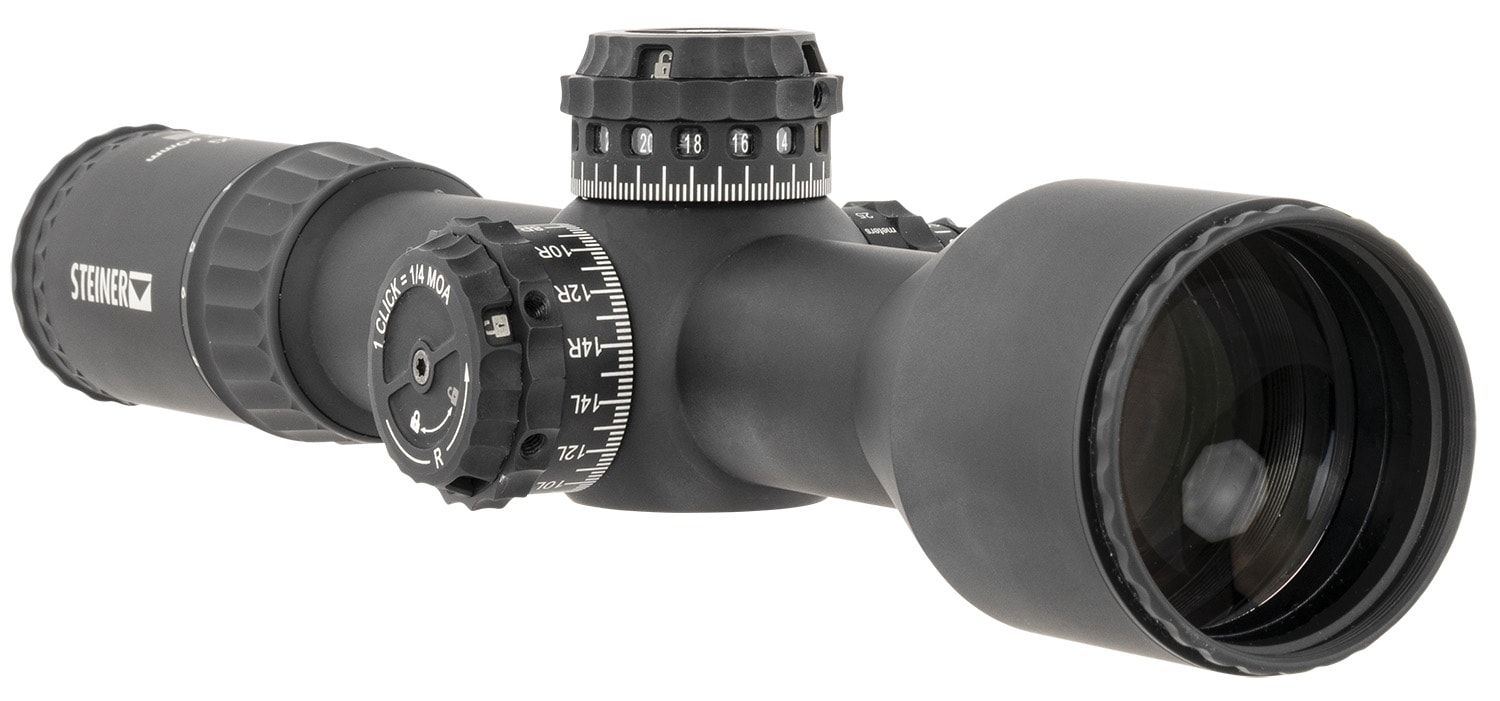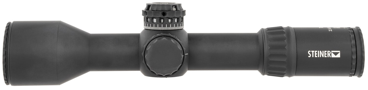 The T6Xi 1-6×24 riflescope features the Steiner KC-1 reticle, designed for quick target acquisition at 1x and precise shooting and positive identification at 6x. Included are both exposed and capped elevation turrets for user or department preference and feature a diopter locking ring to prevent inadvertent movement once the reticle is focused on the user’s eye. The T6Xi models include a throw lever for rapid and confident magnification changes, even while wearing gloves.