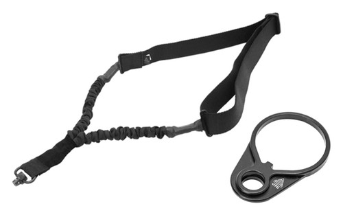 Check out this Leapers® one-point sling and QD end plate bundle. The sling is one-point, which many feel of the three sling configurations is the easiest to maneuver and to change your strong and weak sides in an instant. The QD end plate gives you the quickest and easiest means of connecting and disconnecting your sling. Simply hold in the button, push it into the QD mount on the end plate to connect. To disconnect, hold in the button and pull. Simple. Grab this bundle, and secure your rifle to your person and give yourself that much needed peace of mind that your AR will remain secure and on you at all times.