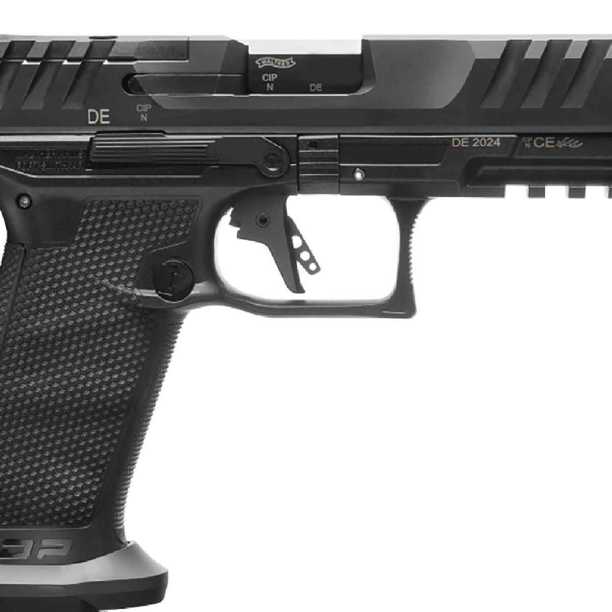 Walther PDP Pro-E 9mm Luger 4.5in Black Pistol – 20+1 Rounds – Step into the world of enhanced performance and reliability with the PDP Pro-E, a firearm designed to redefine your shooting experience. Built for those who demand the best, this firearm boasts a range of features that ensure you’re always ready. Precision in Your Hands: Polymer Flat Faced Trigger The PDP Pro-E is equipped with a flat-faced trigger featuring a polymer trigger-shoe resulting in a consistent and crisp break with every pull. This trigger design optimizes your shooting experience, enhancing accuracy and control for precise shot placement. Seamless Handling: Aluminum Magwell and Aluminum Mag Extensions Enhance your handling and speed with the aluminum magwell, ensuring smooth magazine changes for swift and efficient reloading. Additionally, the aluminum mag extensions provide extra capacity, allowing you to spend more time shooting and less time reloading. Control in All Conditions: Performance Duty Texture The PDP Pro-E features a performance duty texture that ensures a secure and comfortable grip, even in challenging conditions. Rain or shine, your hold remains steadfast, giving you a rock-solid reliable grip, every time. Adaptability at Your Fingertips: Optics Ready The PDP Pro-E is optics ready, allowing you to seamlessly integrate your preferred optic for enhanced accuracy and target acquisition. Whether you’re a fan of red dots or iron sights, the PDP Pro-E adapts to your needs with ease. Elevate your shooting skills with the PDP Pro-E, a firearm that combines precision, handling, and adaptability in a single package. Experience the difference of a firearm designed for those who demand excellence.