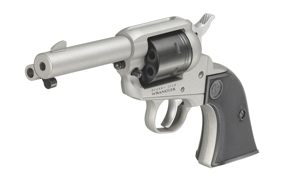 Ruger’s Wrangler features a transfer bar mechanism and loading gate interlock to provide an unparalleled measure of security against accidental discharge. It utilizes a Cerakote finish for rugged reliability in all environments, cold hammer-forged barrel for ultra-precise rifling, blade front and integral notch rear sights and checkered synthetic grips on a Single-Six pattern grip frame.
