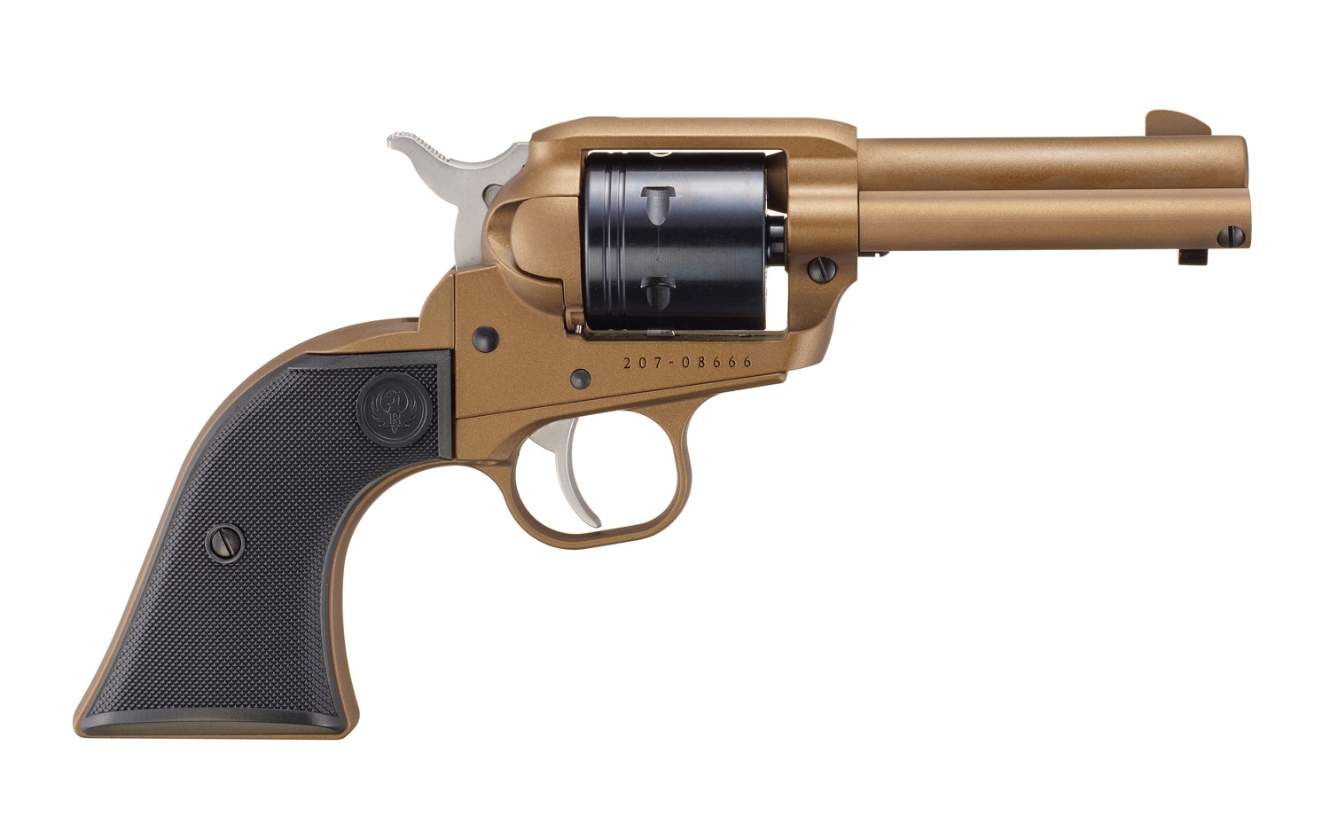 Ruger’s Wrangler features a transfer bar mechanism and loading gate interlock to provide an unparalleled measure of security against accidental discharge. It utilizes a Cerakote finish for rugged reliability in all environments, cold hammer-forged barrel for ultra-precise rifling, blade front and integral notch rear sights and checkered synthetic grips on a Single-Six pattern grip frame.